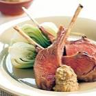 Spoon the desired amount of baba ganoush to one side of the plate and place the rack of lamb beside it and serve with steamed bok choy or green vegetables of your choice.